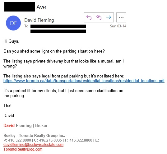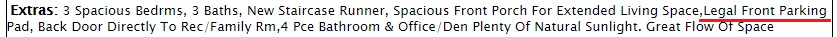 David, how would you feel about a listing saying 2 car parking – 1 legal? I don’t think Toronto is allowing any legal 2 car parking these days, are they?