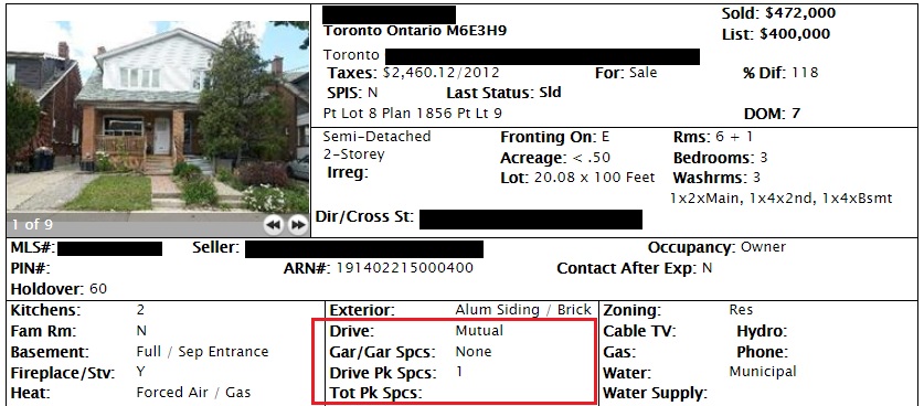 No update on the MLS listing either. That screen shot is from this past weekend, which means they had a full week to digest my email, consider the ramifications of listing a property with a mutual driveway and no parking pad as having a private driveway with a “legal” front parking pad, and yet they chose to hold steady.