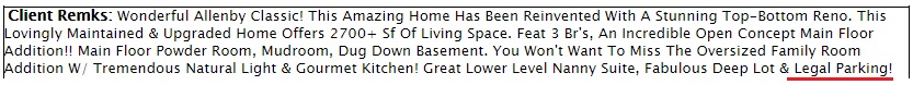 I don’t recall if I’ve ever seen so many misleading listings when it comes to parking as I have so far in 2021. It’s frustrating beyond belief, not just because I’m seeing properties that might meet my clients’ criteria, only to find that there’s no parking, but also because I can’t stand that agents get away with this.