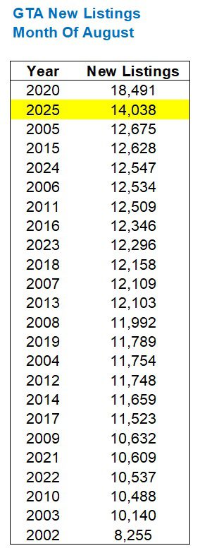 While total sales were the second-lowest in any August, all time, new listings were the second-highest: