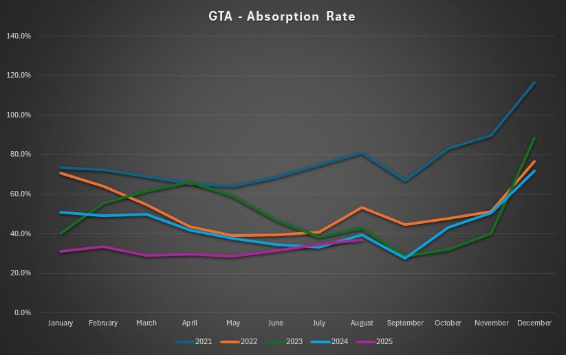 The irony is, despite the absorption rate in August ranking last place for every August since 2002, this is actually the highest absorption rate thus far in any month in 2025.