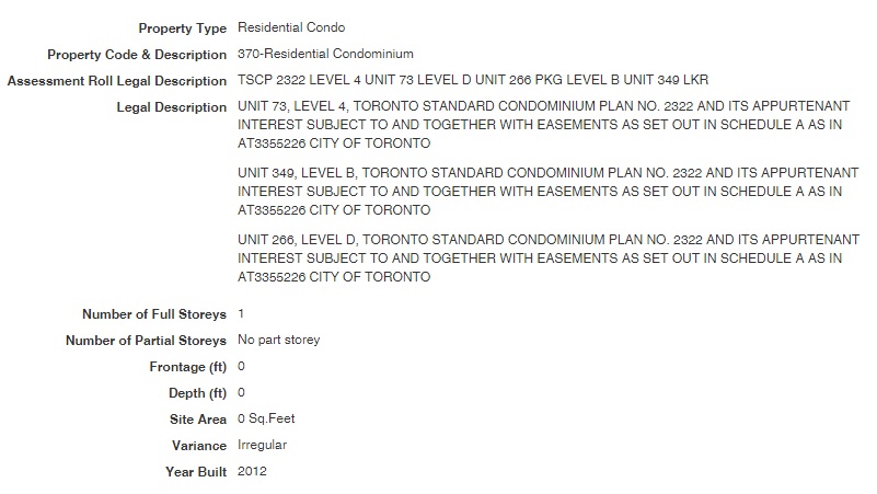Although to be fair, maybe we blame the Toronto Real Estate Board for not making the “Prk Lev/Unit:” field mandatory. This simply allows listing agents to be lazy, and not spend ten goddam seconds looking it up.