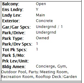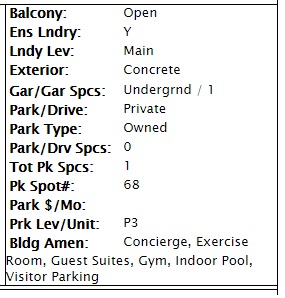 So back to the offer I made on behalf of my investor-client. Well, guess what route the listing agent there took? That’s right – she didn’t put anything on the listing other than “owned” for both parking and locker.