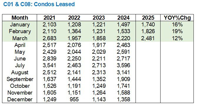 As for condos leased, here’s a data set that speaks to strength in the rental market: