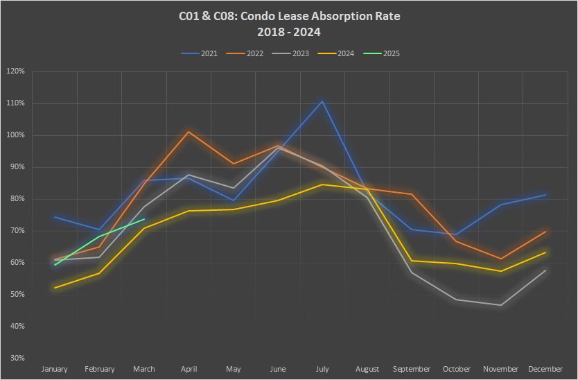 Now, how this all ties together is via the ratio of condos leased to condos listed, ie. our absorption rate: