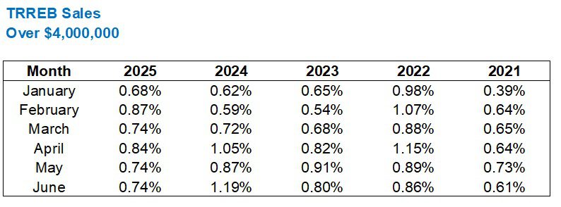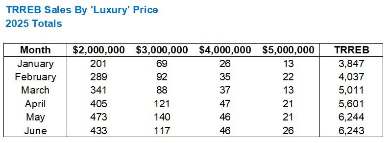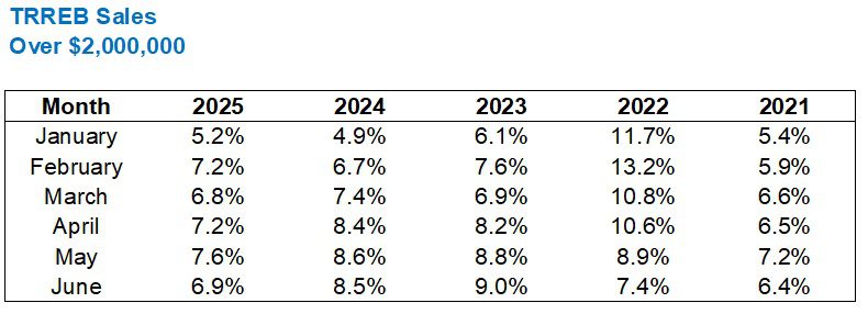 Here’s how the various price points of $2M+ have looked in terms of sales so far in 2025: