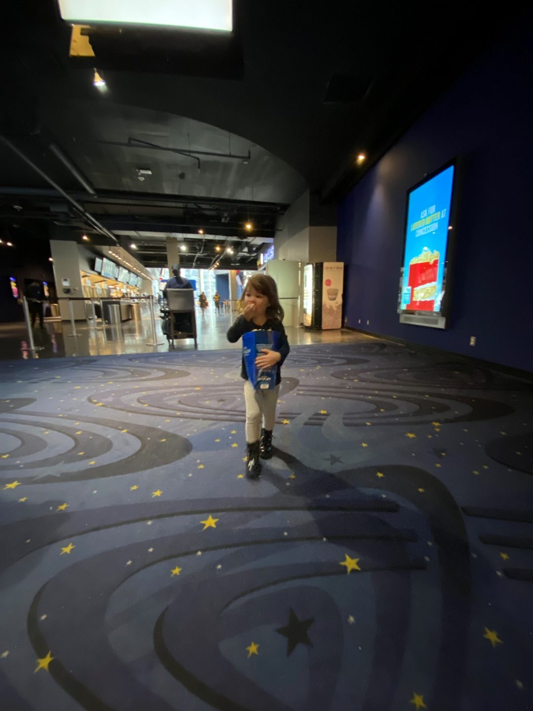 My daughter’s first movie. And first extra-large bag of popcorn…