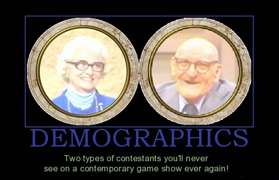 You have to admit, however, that the above graphic is true. I grew up watching game shows in the 1980’s and elderly people were always a part of them. Sadly, American television these days is far too concerned with image to ever consider allowing Agnes, Betty, Mabel, Gertrude, or Marjorie to step onto the set of a reality television show or game show.