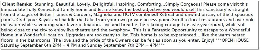 If you don’t understand what this means, don’t worry – nobody does, nor would they, could they, or should they be able to read the mind of the listing agent…