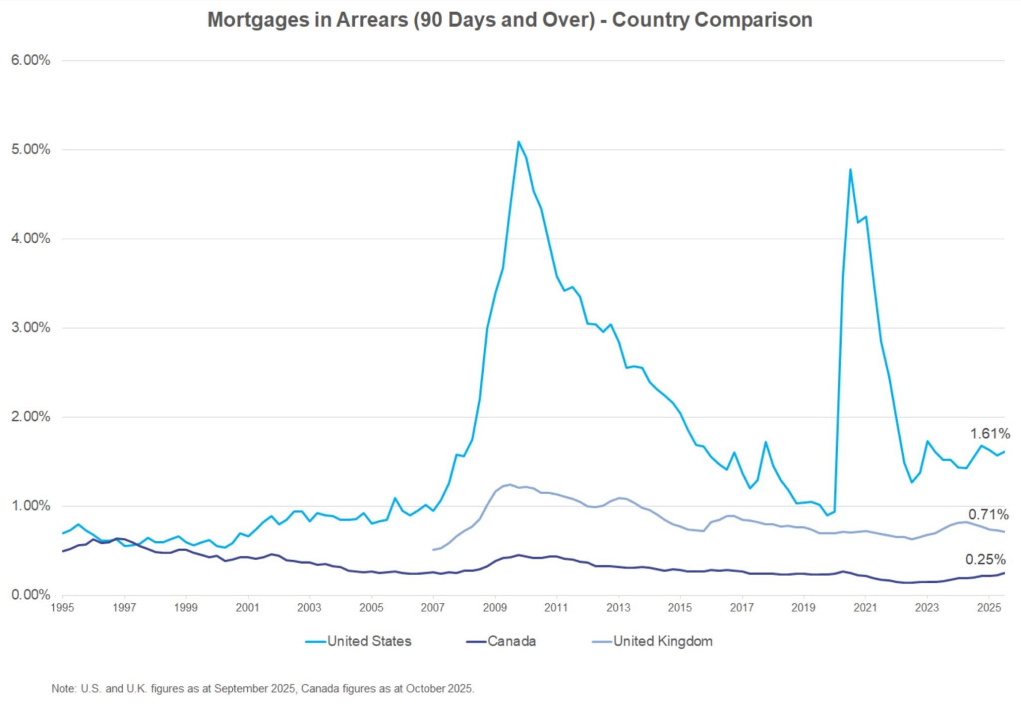 It’s also important to note, as we have done before in this space, that while the United States saw a massive surge in mortgage delinquencies during the 2008 Financial Crisis, our country did not.