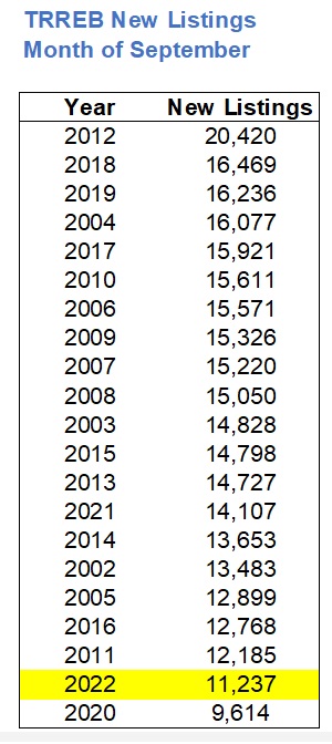 September of 2022 didn’t give us the fewest new listings since 2002, as we saw with sales.