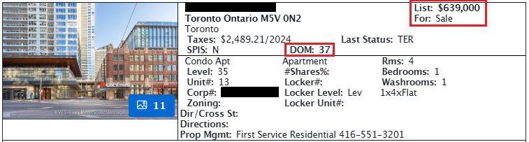 This unit was listed for $639,000 and was unsold after 37 days on the market.