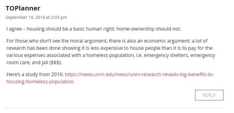 I also don’t believe that home ownership is a right, and this is where the “housing as a human right” argument goes right off the rails.