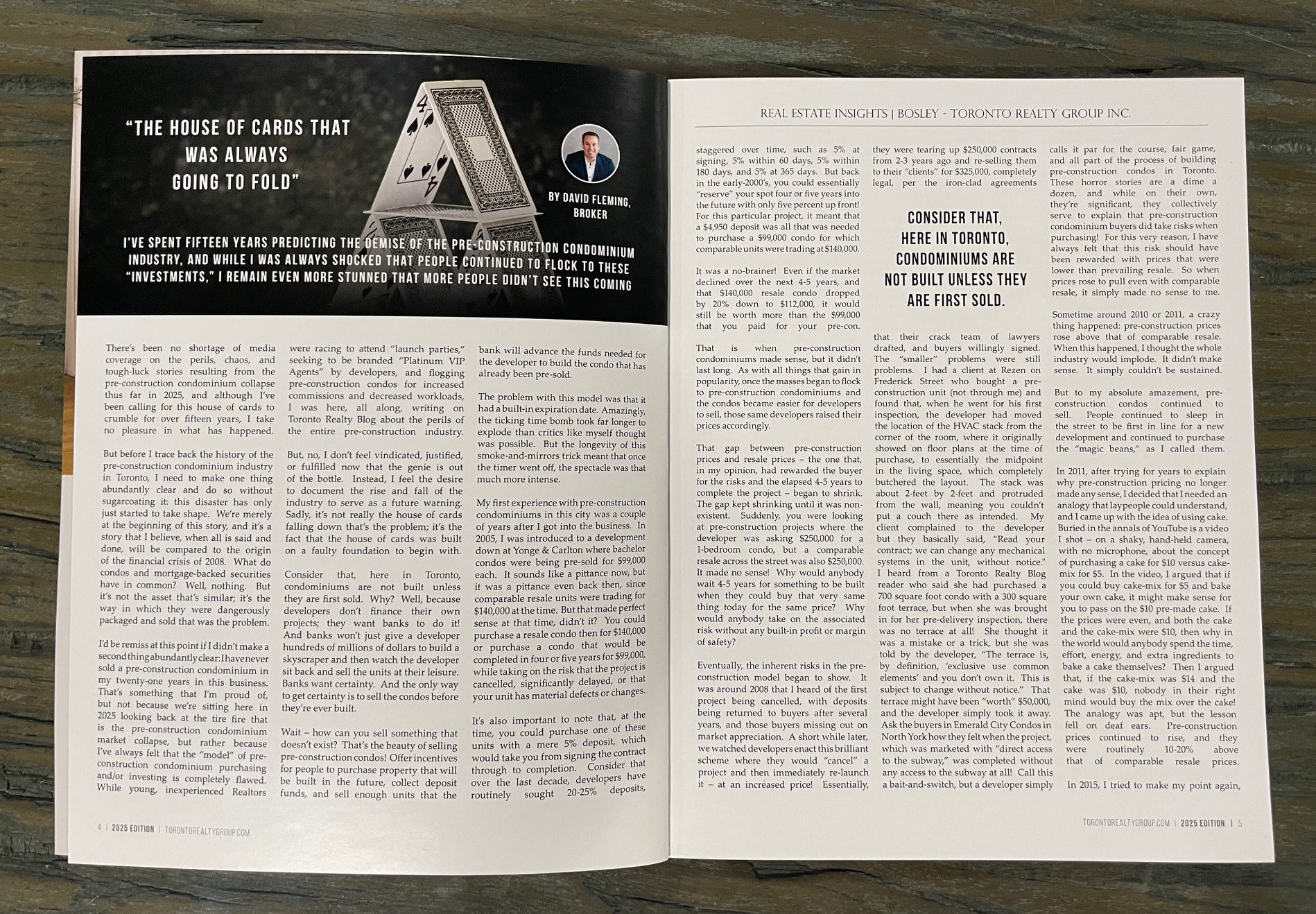 But then, when it came time to publish our fifth annual INSIGHTS Magazine in September, I realized that the thousand people on our team mailing list might not be as familiar with the pre-construction condominium collapse as the TRB reader, and thus I penned a lengthy six-page article: