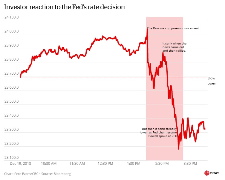 Just look at what happened to the DOW Jones on December 19th when the announcement was made, in this chart from CBC and Bloomberg: