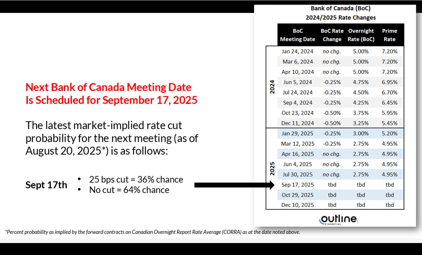 Last year at this time, we were discussing the current Bank of Canada rate, which was 4.50%, and whether or not we would see a cut on September 5th, 2024.