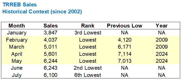 Unless we see a massive increase in sales this fall, the year 2025 will go down as the lowest sales year this millennium.