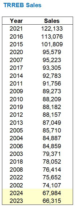 In 2023, we saw the fewest sales of all time in the GTA, and I mean “all time” because the city was half the size in 1999 and I refuse to compare to that data.