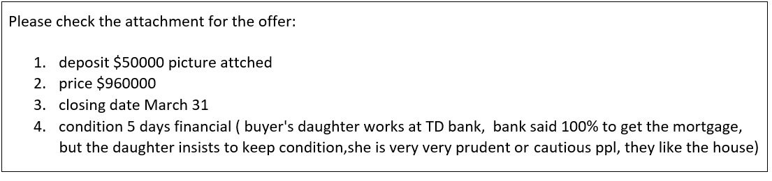 It’s 6:30pm. Offers were due at 6:00pm. Offer registration was 5:00pm. And now I’m in receipt of an offer from a person who I had never spoken to, who didn’t register, who had no name in their email, no name in their email signature, and I actually had to Google this person to find a phone number, which I was not able to.