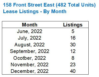 In any event, the first listing for lease at 158 Front Street East appeared on MLS in June of 2022.