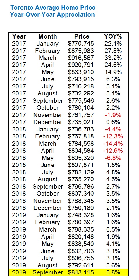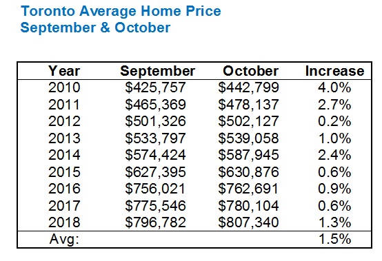 I had predicted in my e-newsletter that the average Toronto home price would surpass $840,000 by the end of October.
