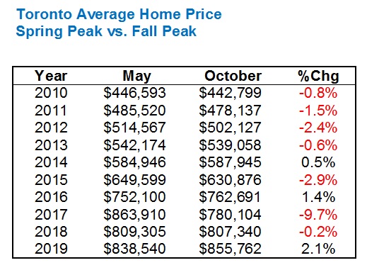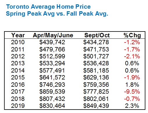 That still means that the average home price in the spring beats the average home price in the fall six times in nine years from 2010 to 2018.