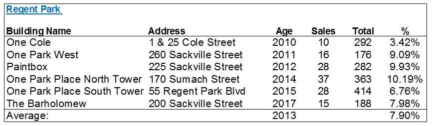 Regent Park comes in as the second-highest with that 7.90% average, and that’s not surprising.